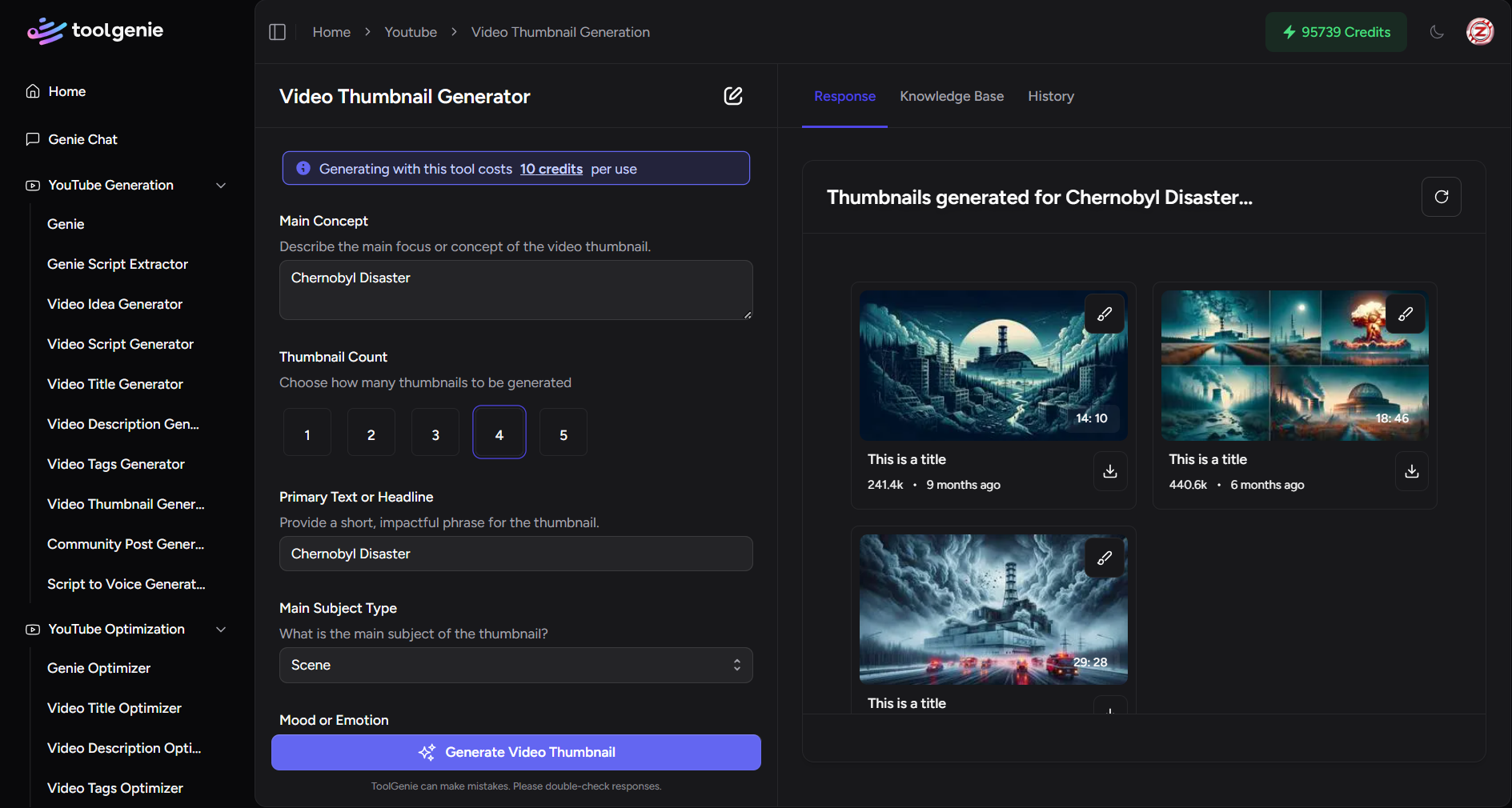 I use ToolGenie for nearly every video now. The thumbnail and title tools alone are worth it. My workflow has never been smoother.